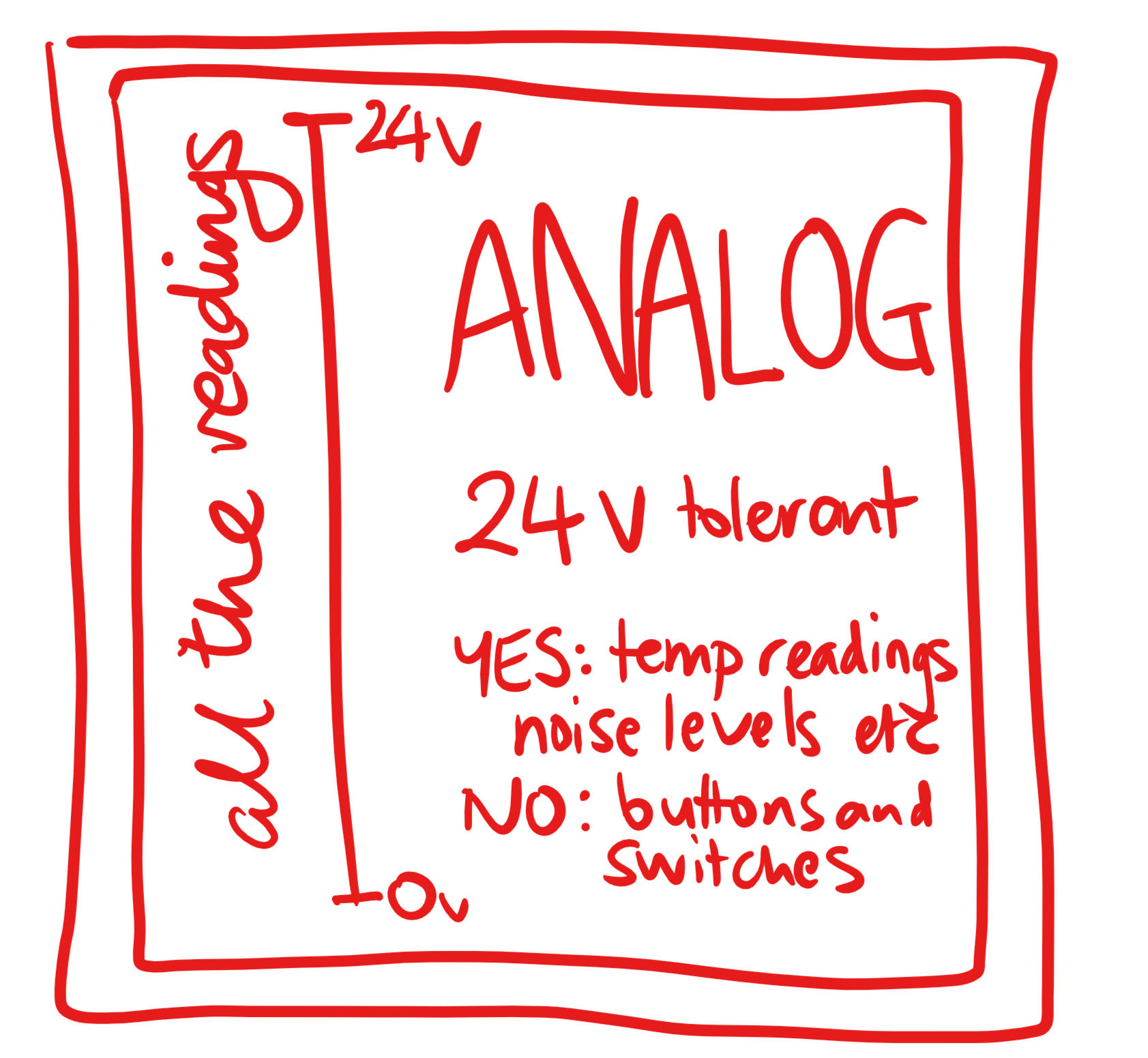We'll begin with analog and inputs, because they're BOTH types of input. This is where you pick a space to plug your sensor in to.