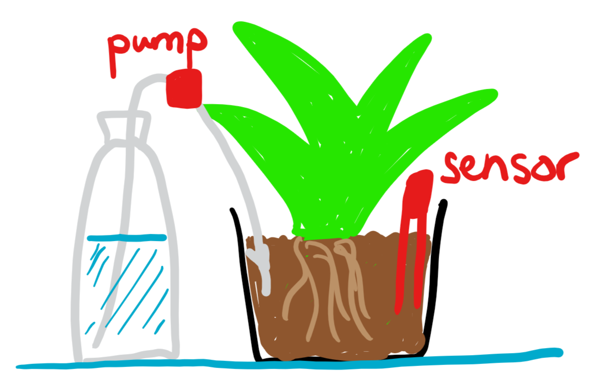 Lets start with some examples. Maybe you want to check if your plant needs water, and water it if it needs it. A moisture sensor that you push into the soil will check whether it needs water or not, and a pump could pump some water out of a bottle and onto your plant.