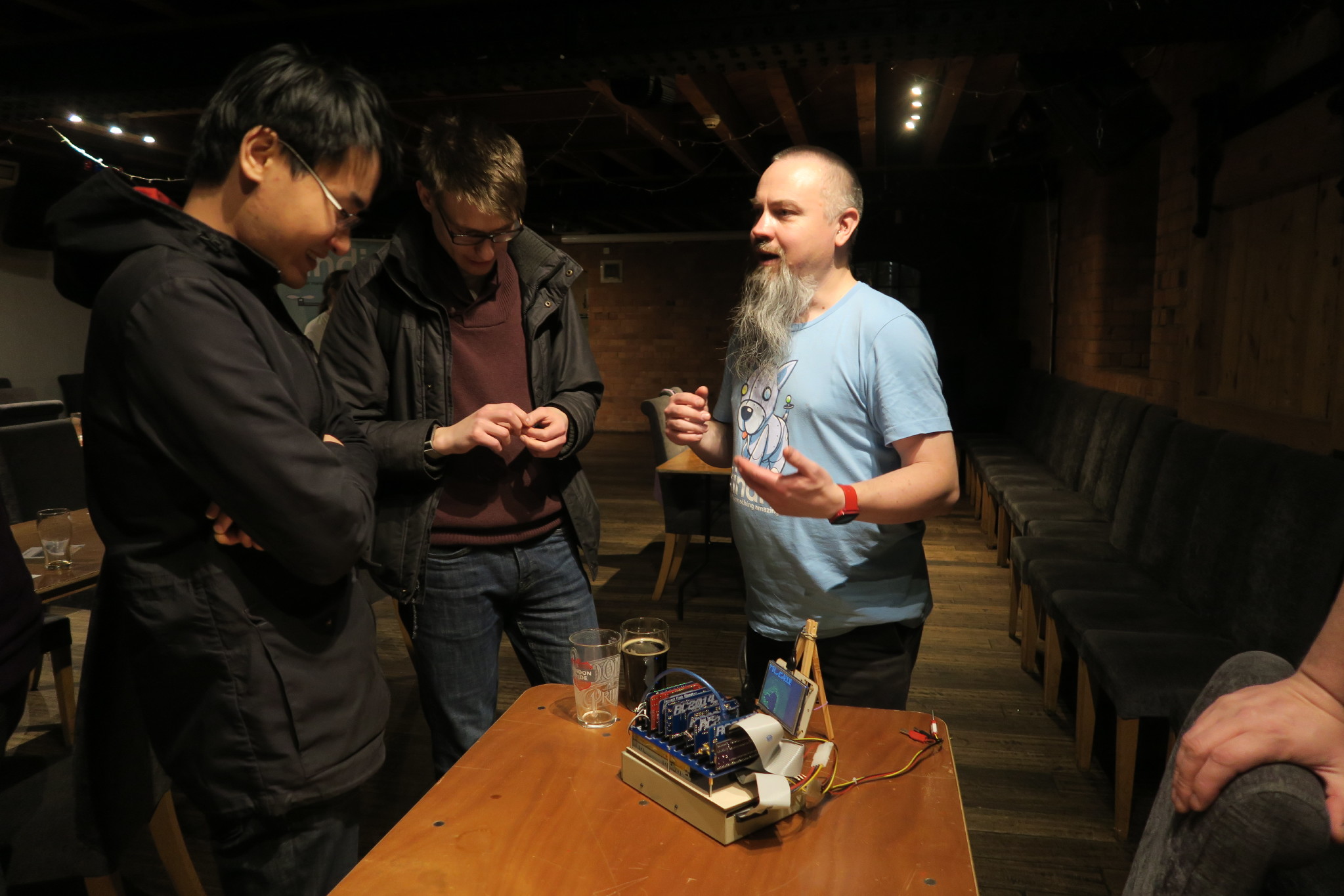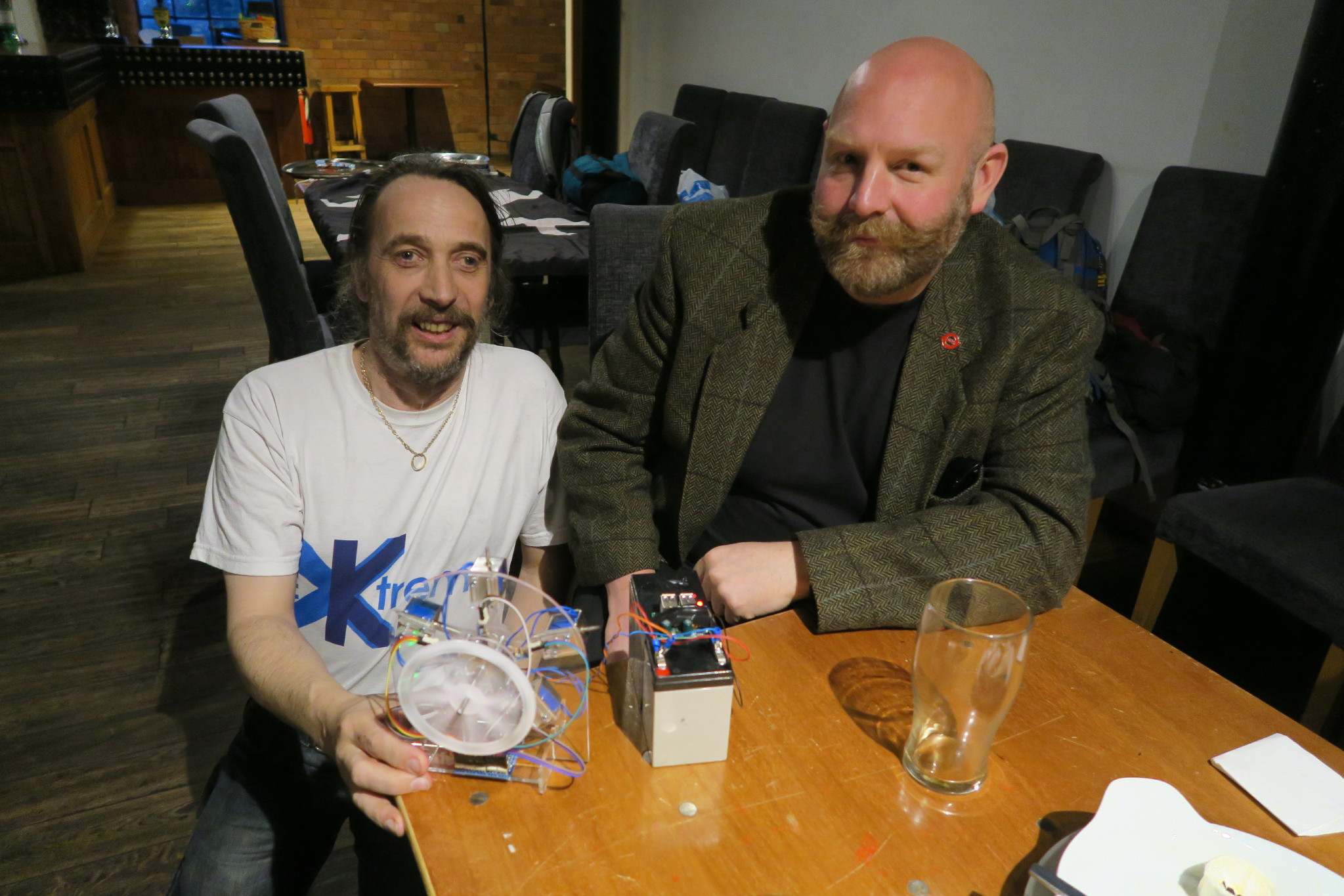To represent the Pirates of Pimoroni Towers, myself and Paul headed down to the Nottingham Beer-n-Hacks organised by Tindie and Hackaday. We were not disappointed! Some highlights of the night included 3-d printed skates, Nixie tubes, neon, whimsical machinery, some very fine milling work, laser tools, and a fractal-producing wonder.